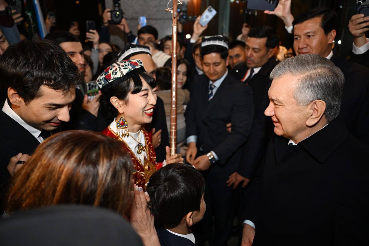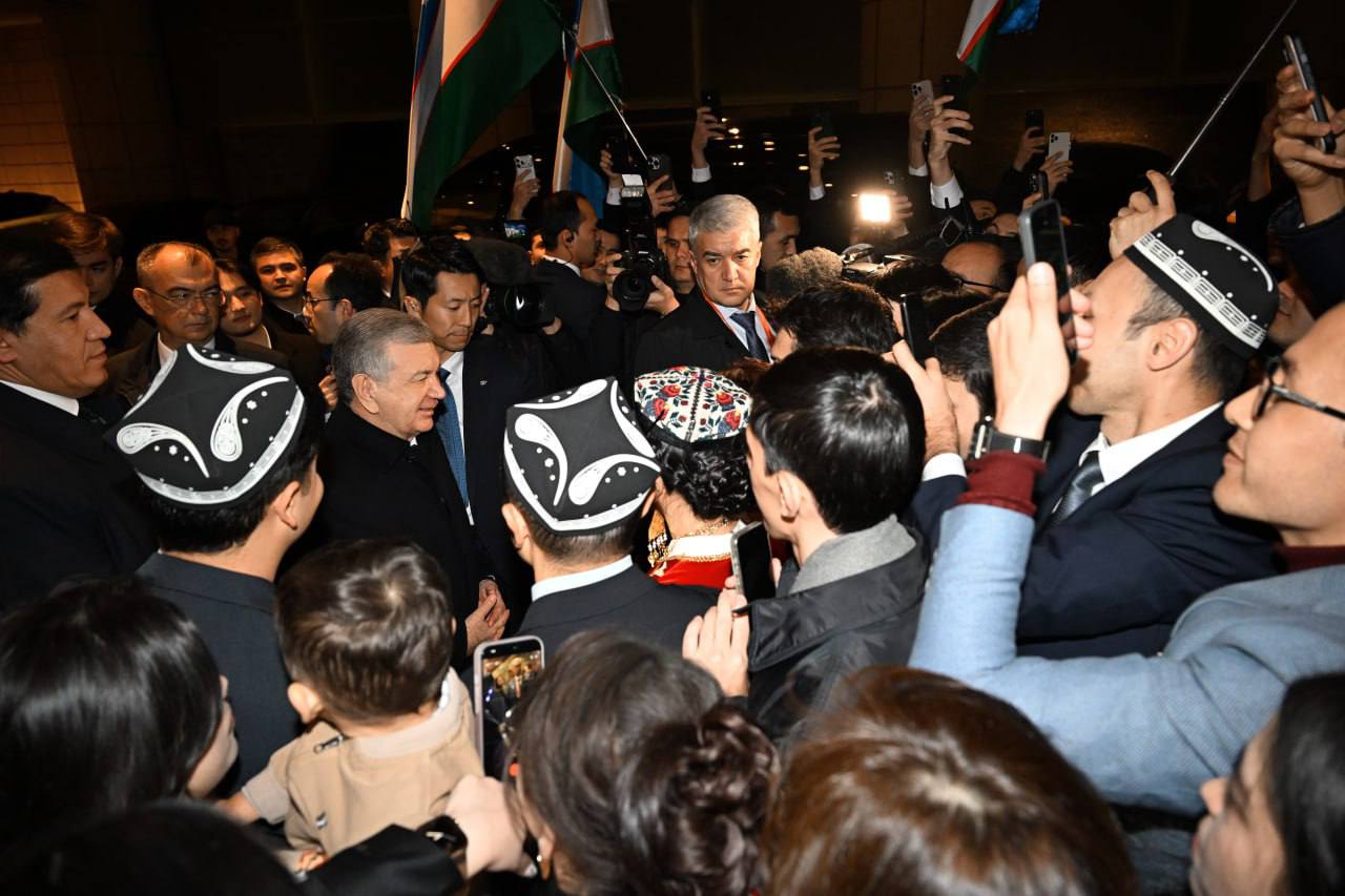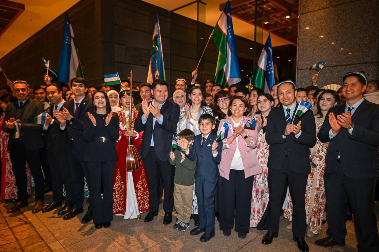 По прибытии с официальным визитом в Токио президента Шавката Мирзиёева встретила группа соотечественников, работающих и учащихся в Японии. Глава государства побеседовал с ними.