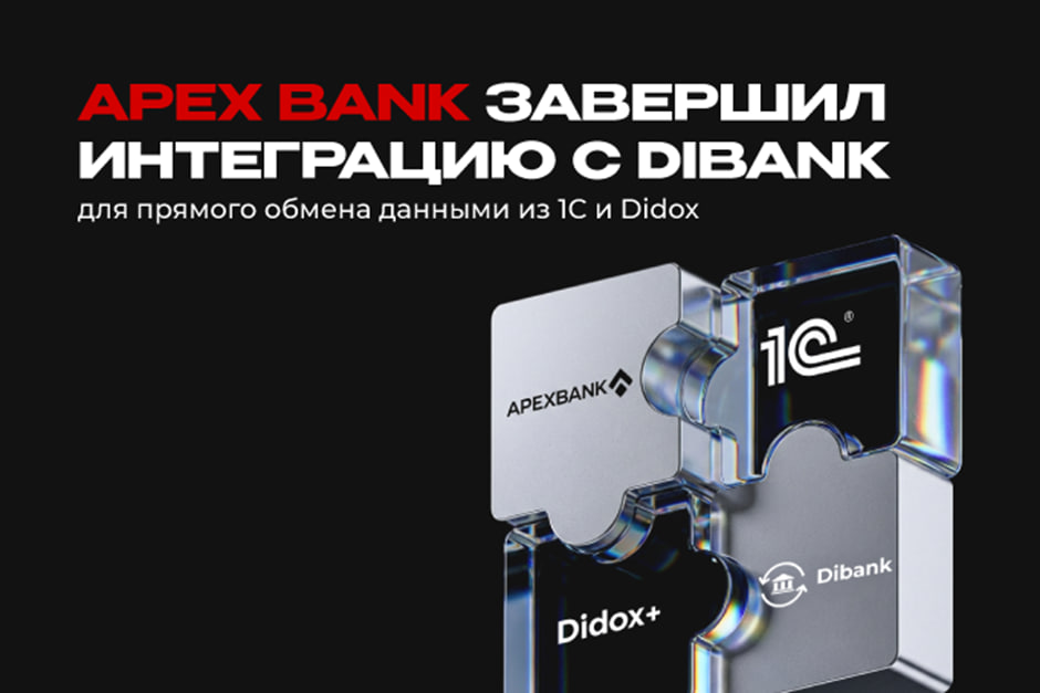 APEX BANK продолжает развивать цифровые сервисы для бизнеса и объявляет о завершении интеграции с Dibank — современным решением, обеспечивающим прямое взаимодействие с банком из учетных систем 1С и Didox.