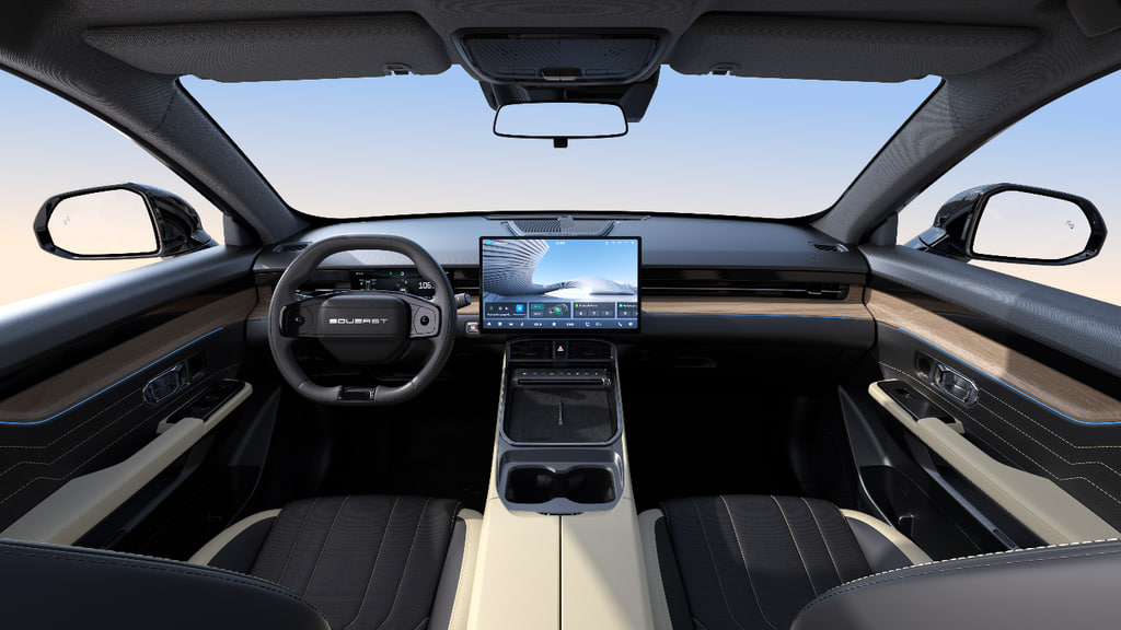 Салон SOUEAST S06 предлагает 15,6-дюймовый экран, беспроводной Apple CarPlay, Android Auto, голосовое управление, беспроводную зарядку, подогрев и вентиляцию сидений, двухзонный климат-контроль с дефлекторами для второго ряда, панорамный люк и атмосферную подсветку. Электроприводы сидений, дистанционный запуск, бесконтактный ключ и электропривод багажника подчеркивают флагманский статус.