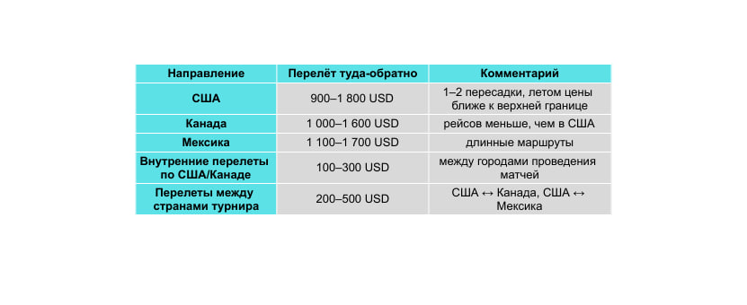 Итоговая таблица расходов на поездку на чемпионат мира 2026 года.
