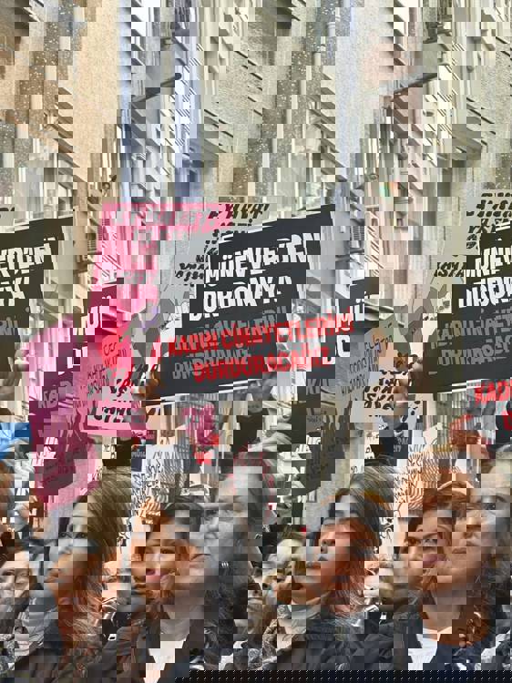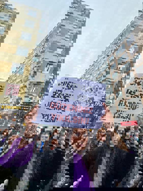 В Стамбуле участники акции прошли пешком от станции метро «Османбей» до улицы, где было найдено тело погибшей. Демонстранты держали плакаты с надписями «Мигрантки не одни» и «Жизнь женщин имеет значение».