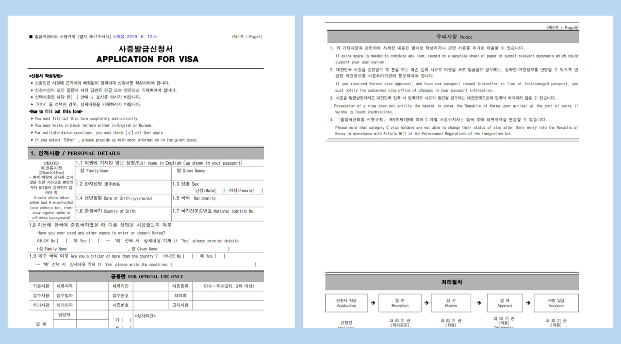 Формы приглашений, спонсорских писем и документов для учебных виз (например, D-2 или D-4) обычно оформляет принимающая сторона — университет, работодатель или родственник в Корее.
