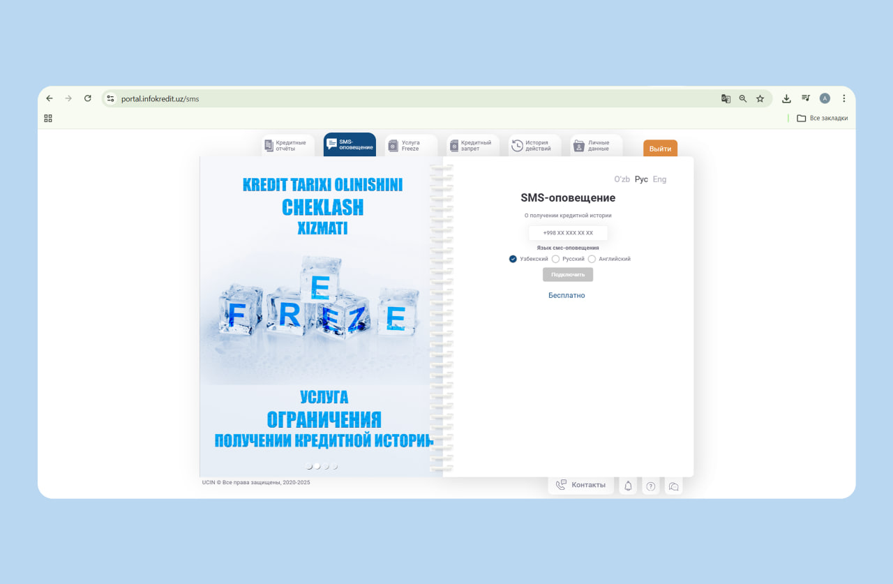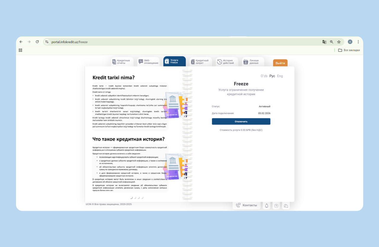 После обработки обращения информация о Freeze фиксируется в системе кредитного бюро. Ограничение начинает действовать после активации услуги.