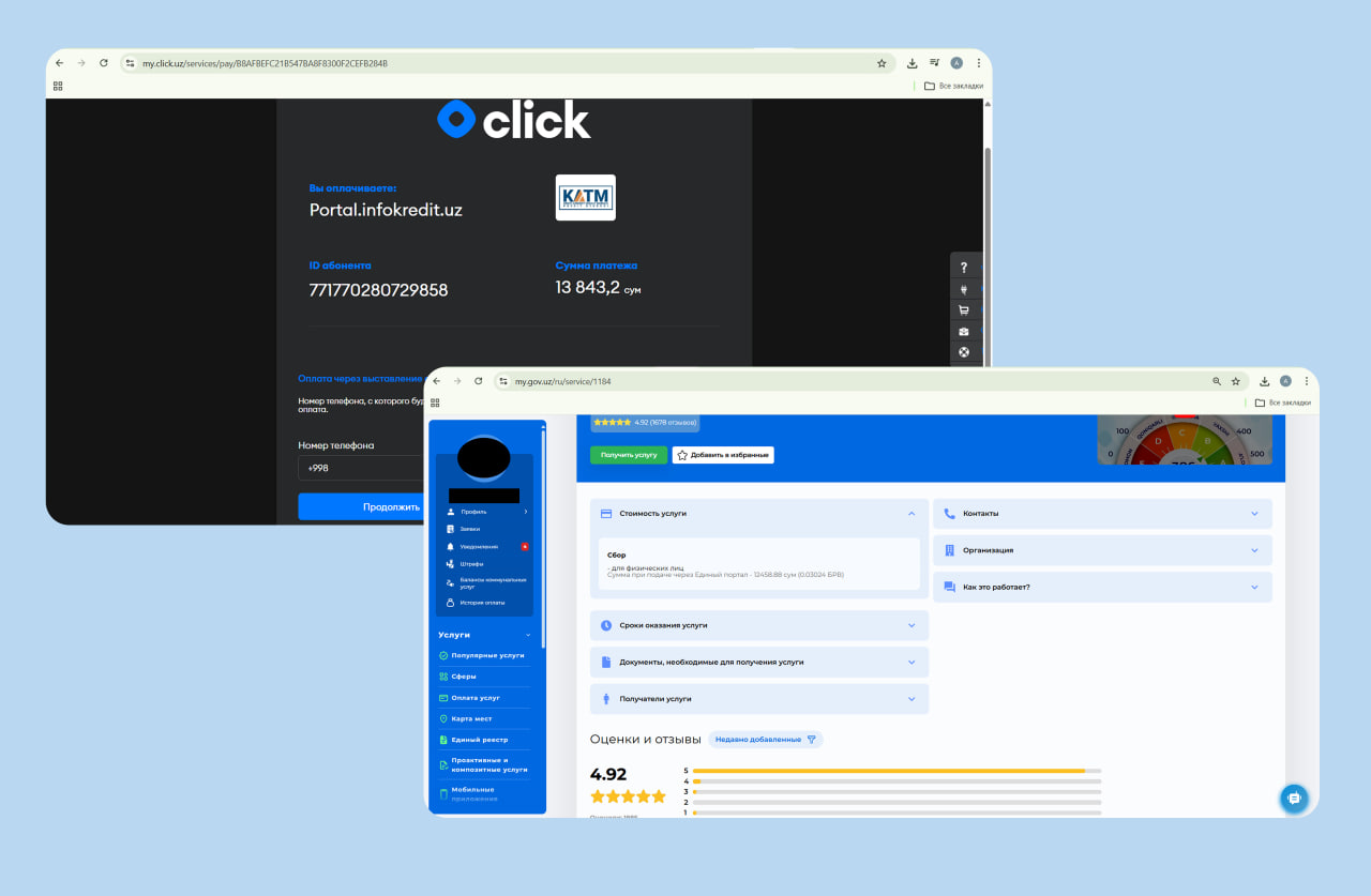- через Единый портал my.gov.uz — 12 458,88 сум (0,03024 БРВ);