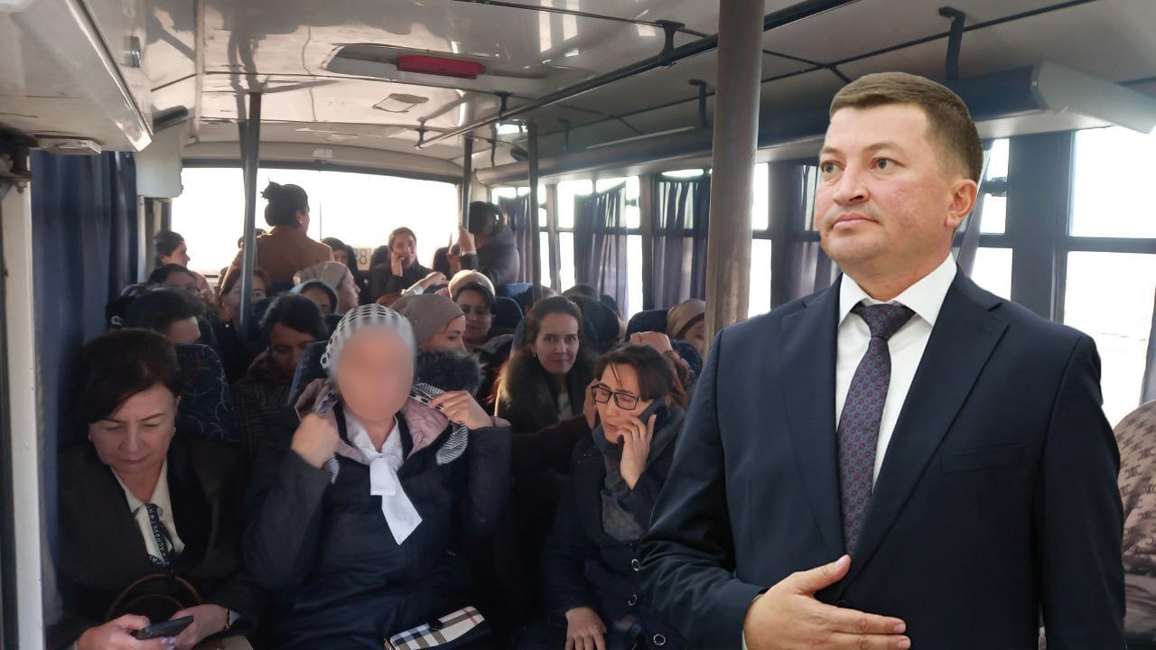 После встречи Болтаев распорядился доставить всех учителей школы в здание районной администрации к 17:00. Всего 46 педагогов, большинство из которых женщины, на автобусе проехали около 30 км и прибыли в хокимият в назначенное время.