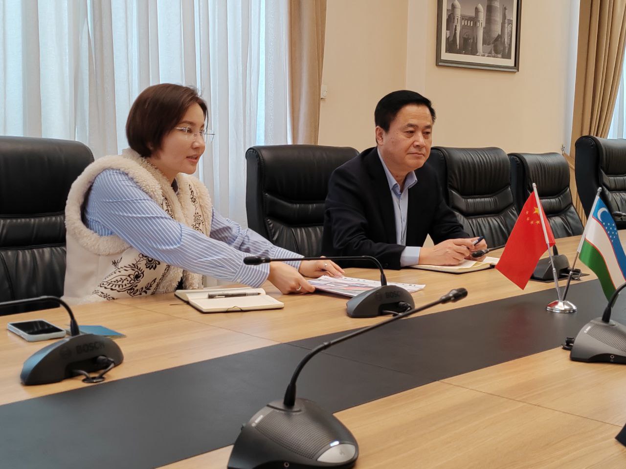 Заместитель министра инвестиций, промышленности и торговли Ильзат Касимов провёл встречу с президентом китайской компании «St Wonderful» Фан Сяожун, которая реализует ряд проектов в Новом Ташкенте и Ташкентской области