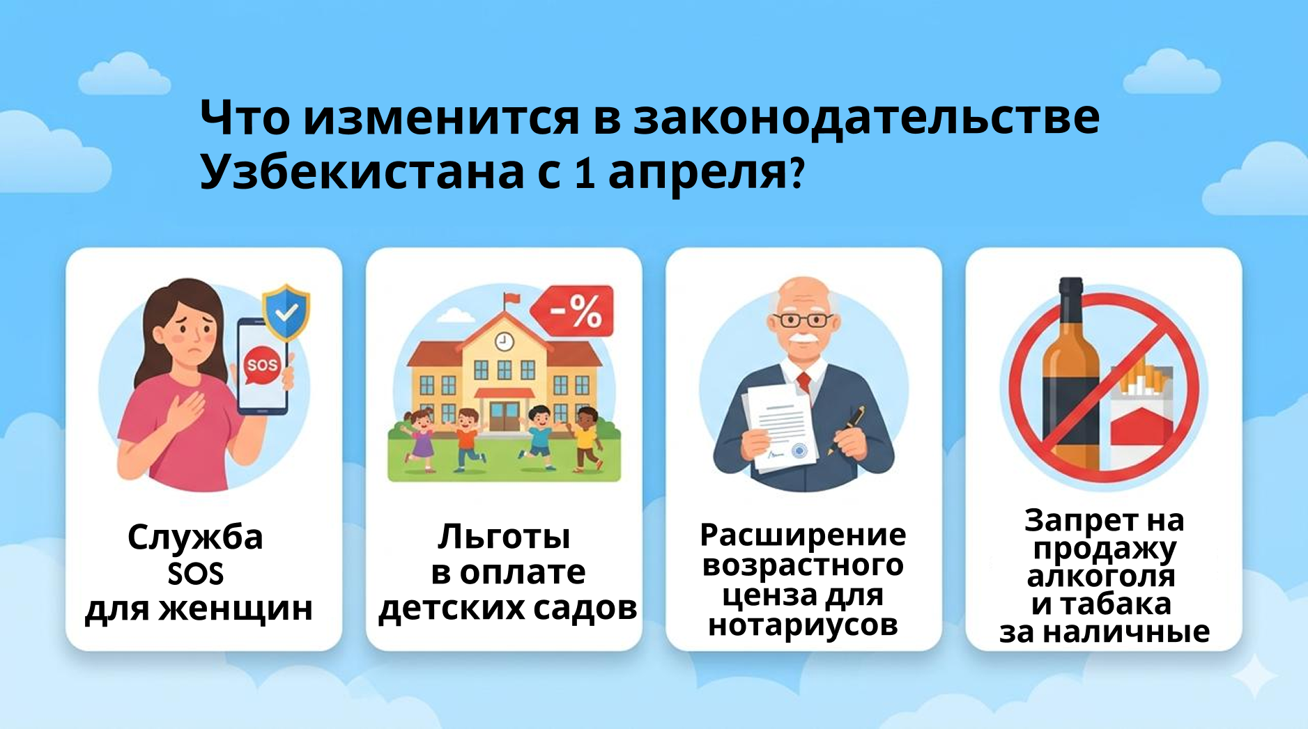 Kun.uz по традиции напоминает о некоторых нормах законодательства Узбекистана, которые вступают в силу с 1 апреля 2026 года.