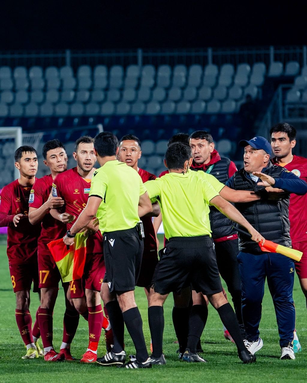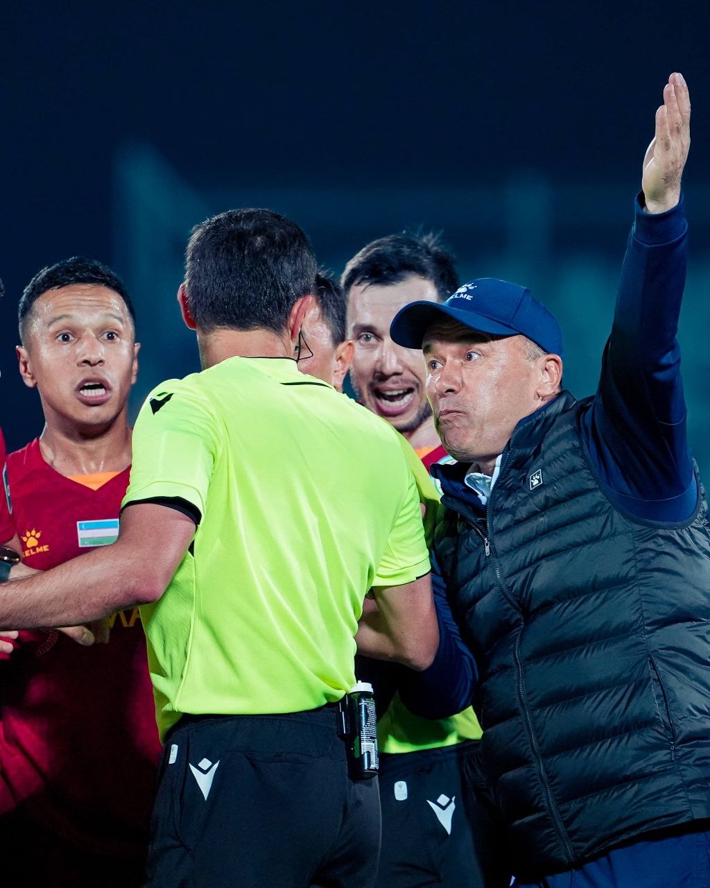 Главный тренер «Насафа» Рузикул Бердыев и игроки резко выразили несогласие. Бердыев получил красную карточку и хотел увести команду с поля, игра остановилась на некоторое время.