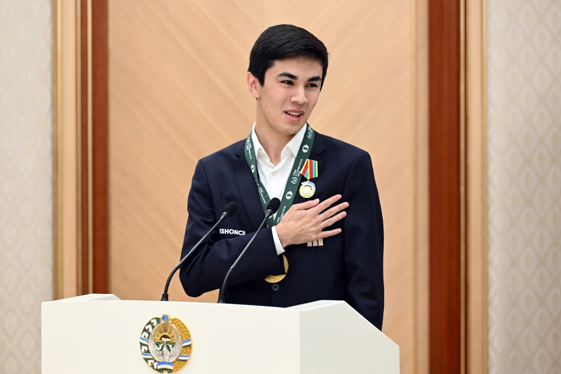 Глава государства торжественно вручил шахматисту эту высокую награду. Гроссмейстер выразил президенту глубокую признательность за постоянное внимание к молодежи и развитию спорта, создаваемые широкие возможности, а также за оказанное высокое доверие и признание.