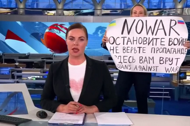 «Здесь вам врут»: во время прямого эфира на Первом канале девушка выбежала с плакатом в студию