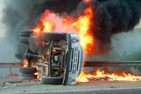 В результате ДТП в Джизакской области сгорел водитель грузовика