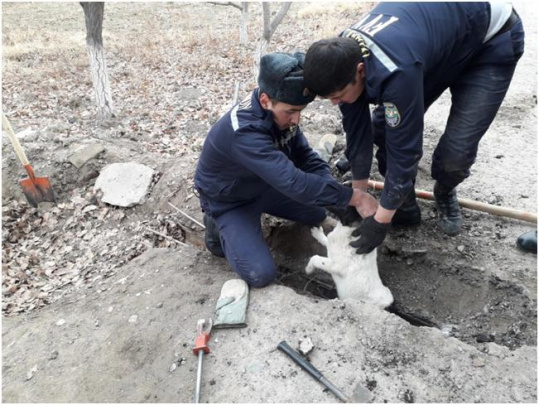 В Хорезме сотрудники МЧС спасли застрявшую в трубе собаку