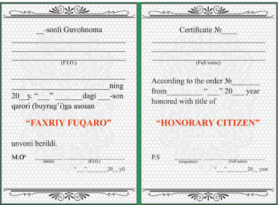 В Узбекистане намерены учредить звание «Почетного гражданина»