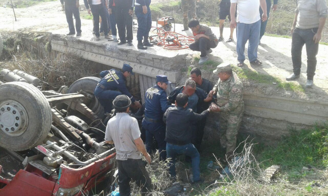 В Сырдарье спасатели вызволили водителя упавшего в канал грузовика