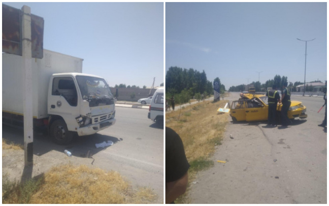 В Кашкадарье на трассе произошло столкновение трех автомобилей - видео