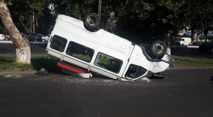 В Ташкенте в результате ДТП перевернулась маршрутка с пассажирами