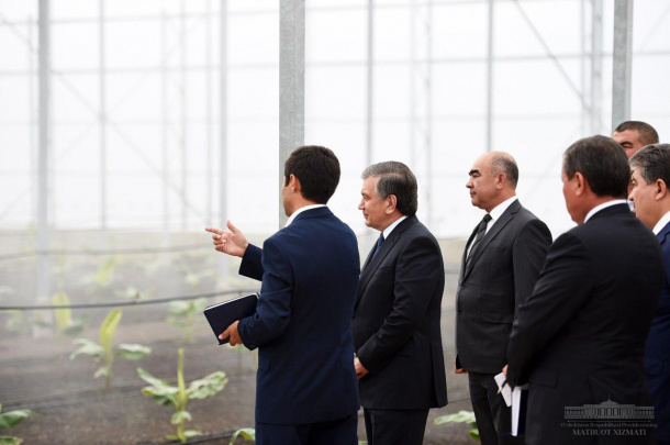 Президент Узбекистана осмотрел банановую теплицу