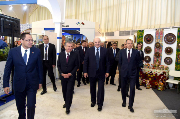 Мирзиёев и Лукашенко посетили выставку продукции Узбекистана