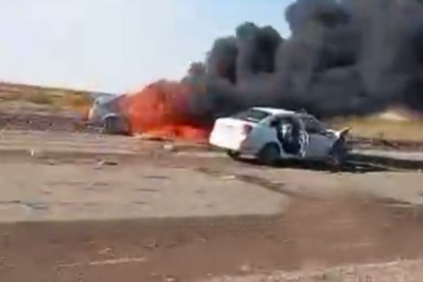 В Кашкадарье в результате ДТП сгорел автомобиль