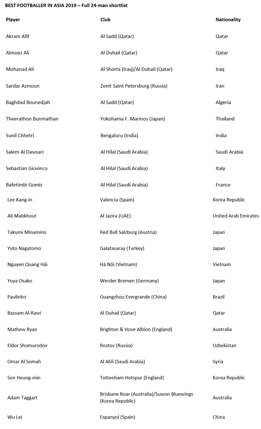 There are 24 players on the list, including such well-known players as Takumi Minamino (Liverpool), Song Heung-min (Tottenham Hotspur), Paulinho (Guangzhou Evergrand, China) and others.